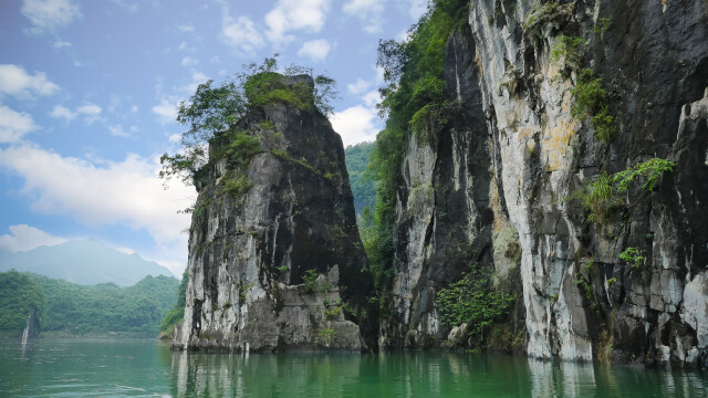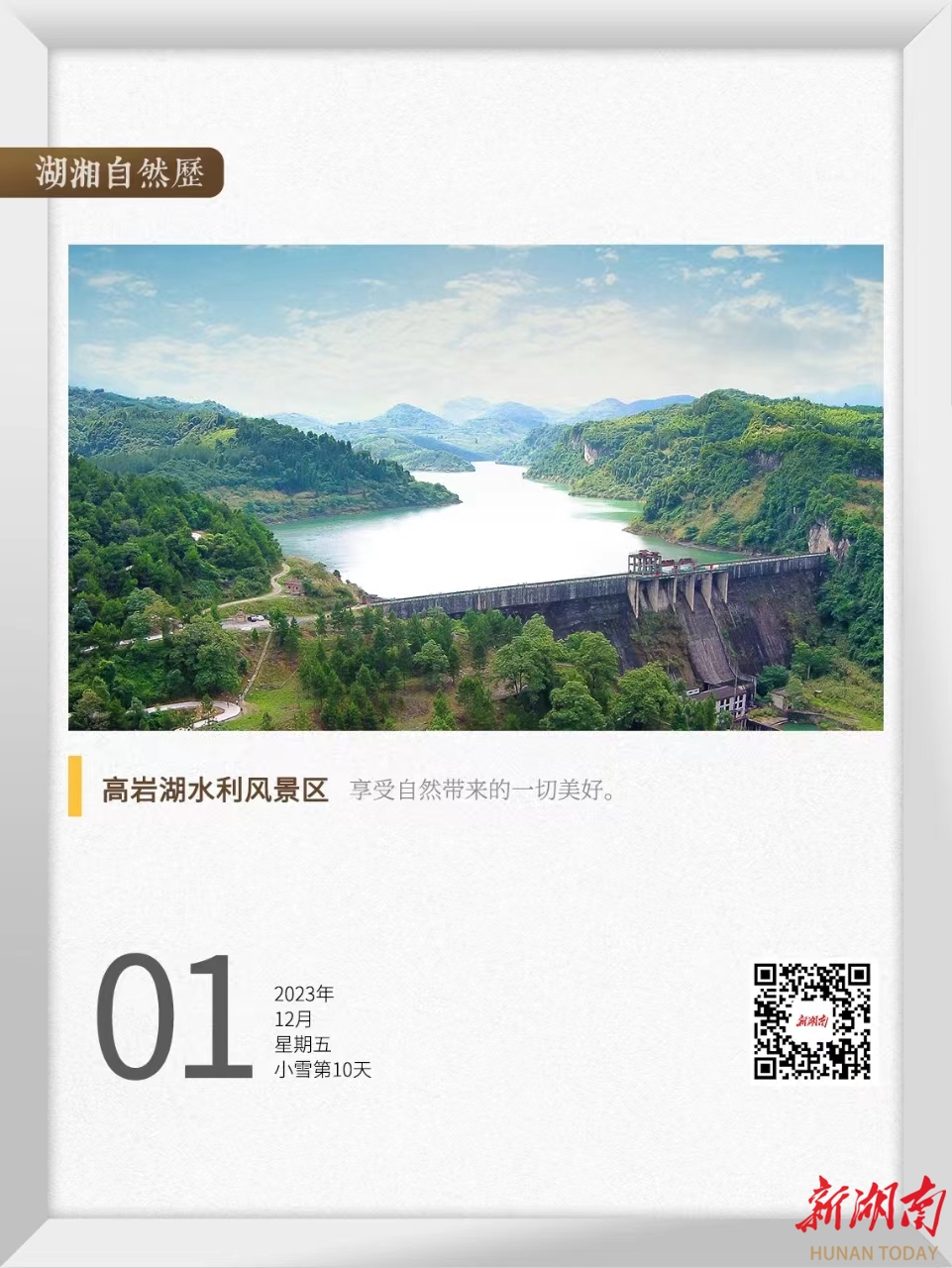 高岩湖水利风景区地处高岩水库源头,是东安县城饮用水保护区,水质尤其清澈。冬日漫步在景区,在高山峡谷之中,可见两岸崇山峻岭、岩高壁陡、丛林密布。坐船游览,一路风景如画,水库的清凉扑面而来,令人心旷神怡。走进高岩湖水利风景区,也有穿越时空隧道的感觉。这里有许多古村、古树、名胜古迹,有国家级文物广利桥、清代悬葬曾氏古墓,还有众多木质结构的传统建筑,以及最古老的一棵红豆杉,这棵高达30多米、胸径达1.7米的古树已经生长了1200余年。