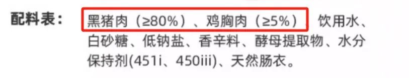 5 元/根的烤肠主要为鸡肉,肉含量为 48%。