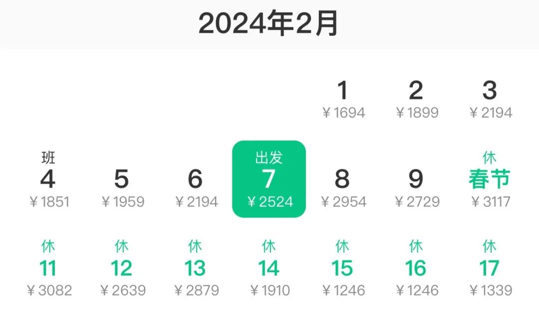 此外,如果想淘性价比高的长假机票,可以关注一下长假中后段,也就是正月初三初四以后的机票,有比较大的概率能“捡漏”。