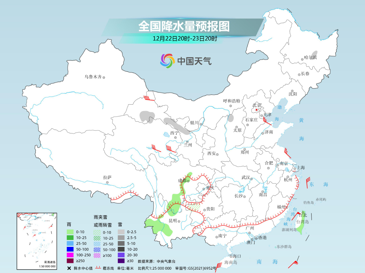 目前,持续低温天气还在继续。22日进入冬至节气,对于长江中下游以及华南等地来说,气温将陆续跌至谷底,多地或刷新今冬以来新低,最低气温0℃线将南压到贵州南部至华南北部一带。中央气象台21日18时继续发布低温黄色预警。