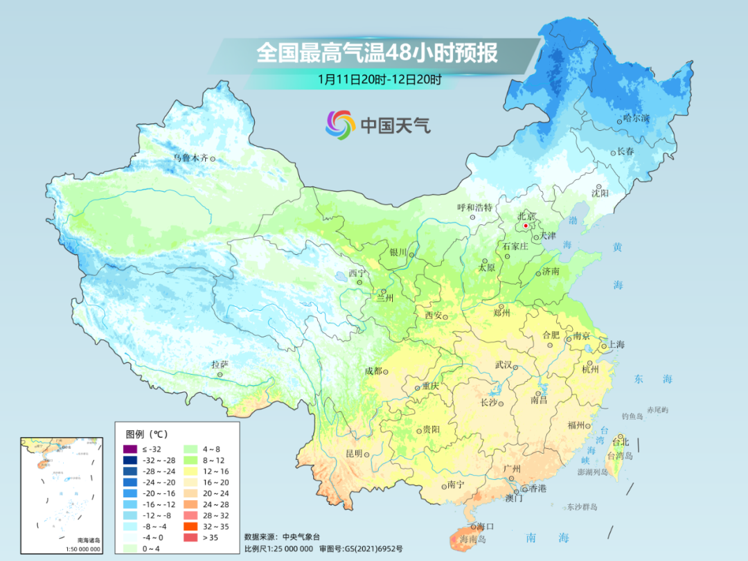 冷空气依然频繁。今明两天,冷空气将影响内蒙古东部以及东北一带,尤其黑龙江部分地区降温幅度可达到6~10℃,像哈尔滨最高气温将从-8℃降到-15℃。