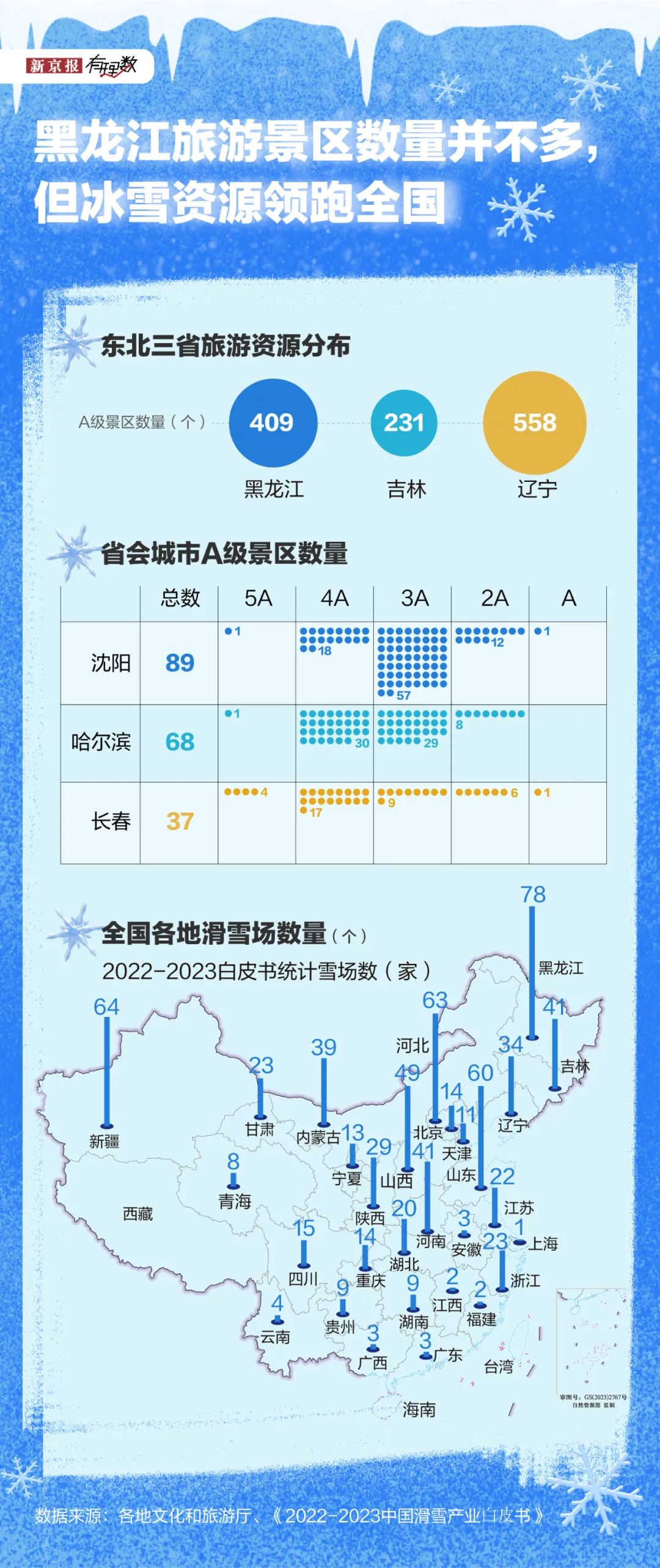 单从旅游景区的数目看,黑龙江不及辽宁,哈尔滨5A级景区数量不及吉林长春,但黑龙江有得天独厚的冰雪资源,每年历时数月的冰雪季,已经铸就了哈尔滨独一无二的冰雪文化。