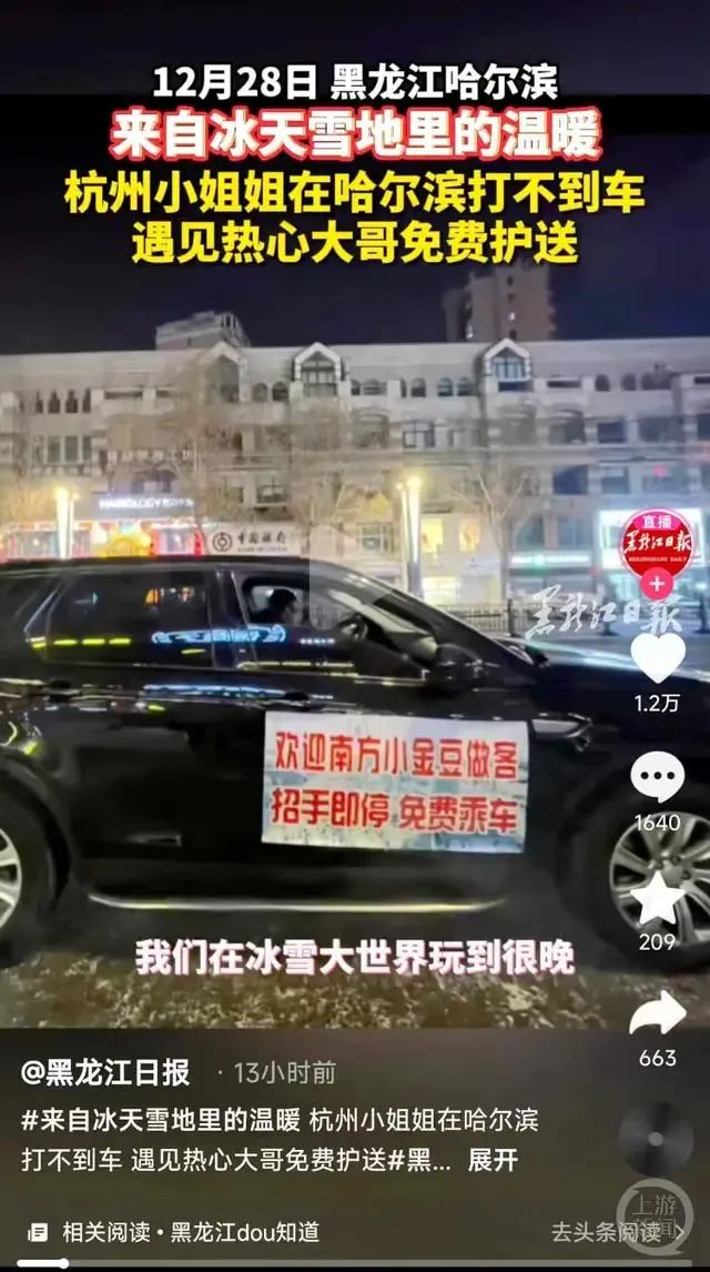 黑龙江省在感谢信中直言“您的传扬,把很多龙江人都‘整不会了’”。这场双向奔赴的背后,是哈尔滨待人的诚恳,是游客朋友们对这种诚恳的肯定。