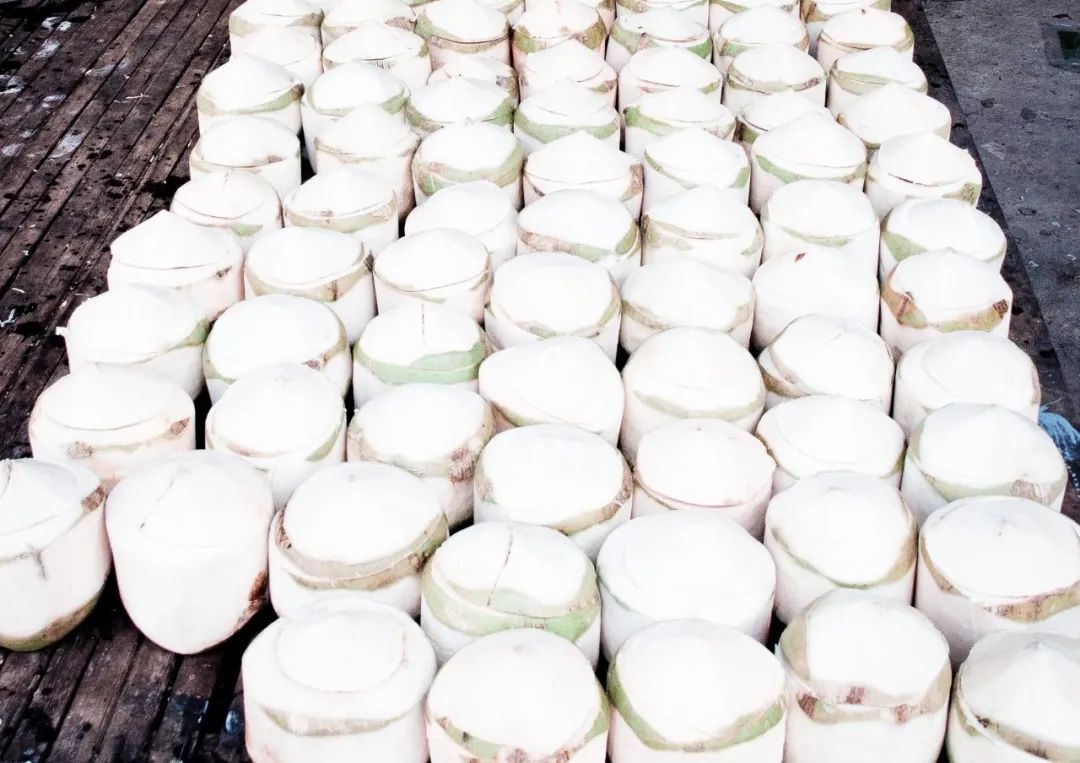 椰子喝了椰汁后,可以看到椰子的内壁有一层Q弹的白色椰肉。由于椰肉的脂肪含量高,所以可以从里面提取出油脂,就是我们所说的椰子油。