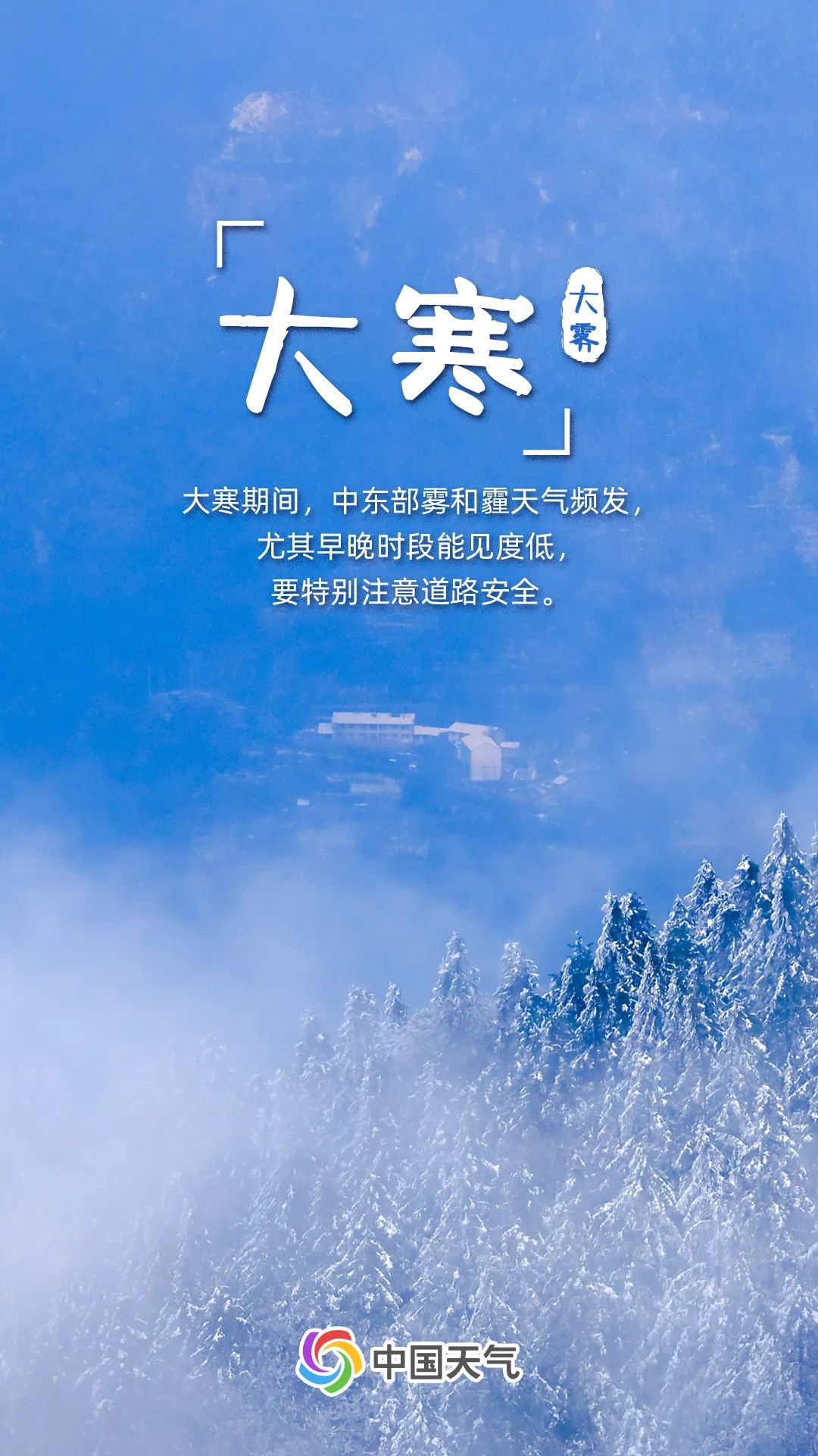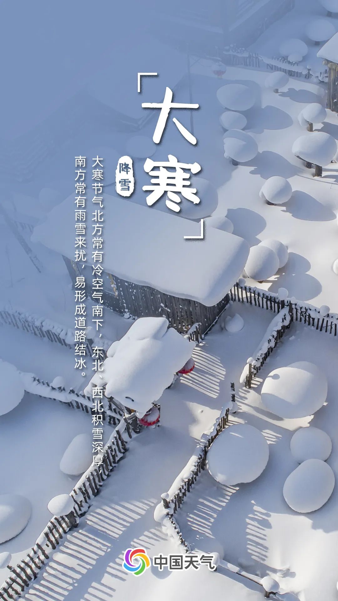 大寒节气常有冷空气南下,东北、西北一带降雪频繁,积雪深厚;华东、华中、西南地区也常有雨雪来扰,易形成道路结冰,我国从北到南均有道路结冰预警发布。