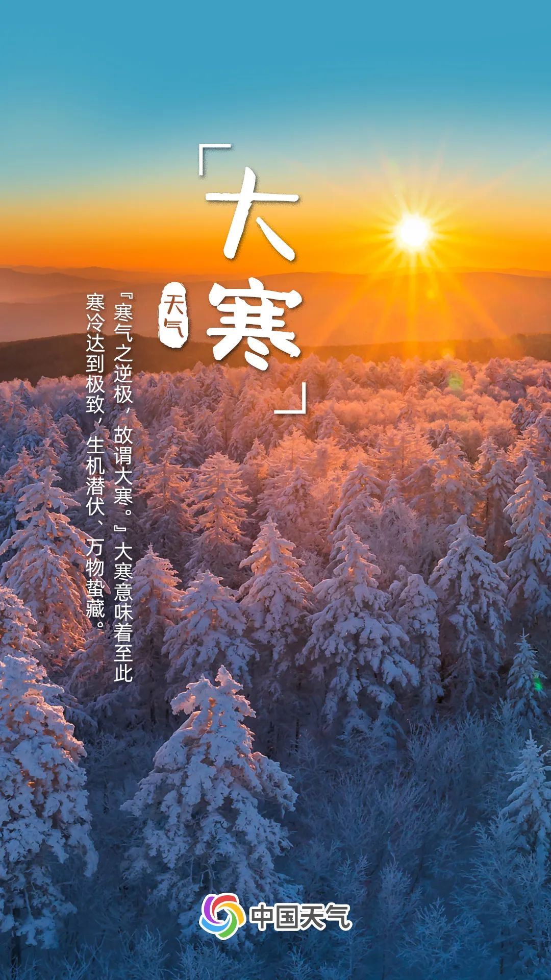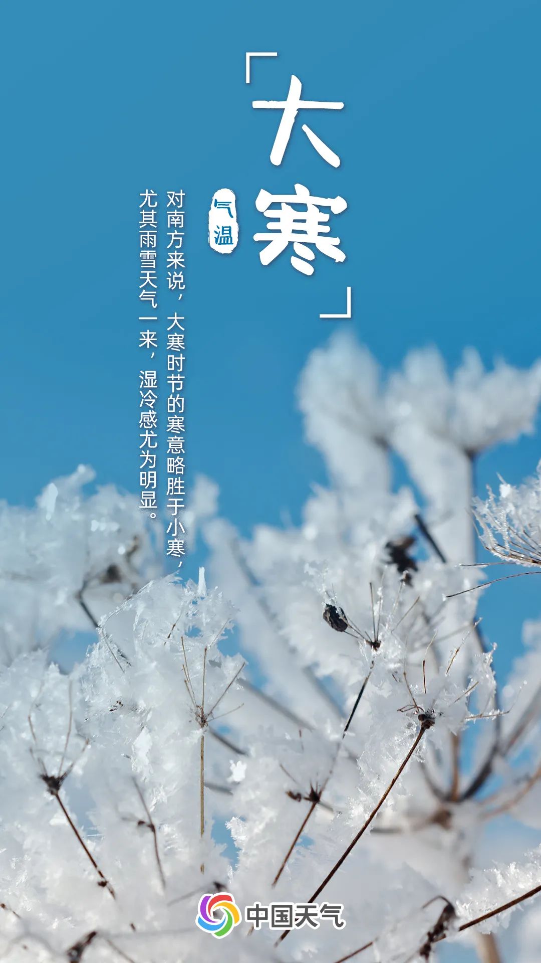 “时至岁末有大寒,天寒地冻雪满山。”同小寒一样,大寒也是表示天气寒冷程度的节气。中国天气网气象分析师石妍介绍,大寒节气全国大部地区进入隆冬时节,常有极端低温出现。
