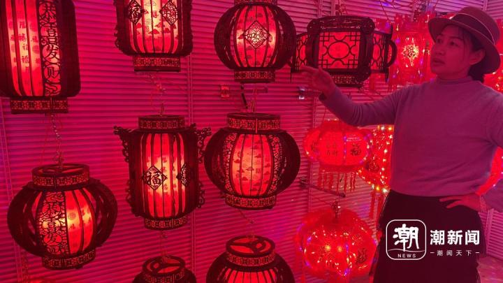 1月20日,义乌国际商贸城一家灯笼店里,数十个灯笼款式中,最受年轻人喜爱的是一款新款棕色木质灯笼。“两三个月前就非常火爆了,目前大批量订单没法接了,实在来不及制作。”老板冯香玉向潮新闻记者介绍,“仓库往年的备货都已经售罄,制作灯笼模具的废铁都已经卖了几十万元了。”