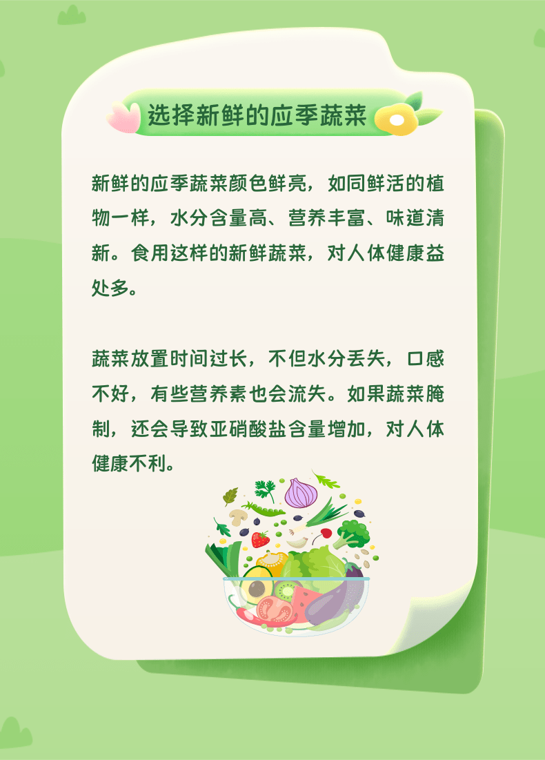 蔬菜是维生素和矿物质的主要来源,还含有较多的纤维素、果胶和有机酸,能刺激胃肠蠕动和消化液的分泌,不仅能让人们食欲更好,也能帮助消化。合理选择新鲜蔬菜,可以从源头上让蔬菜的营养价值最大化。