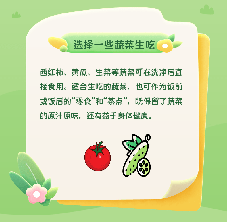 加热烹调除了改变蔬菜的口感和形状外,也会造成维生素的破坏,在一定程度上降低蔬菜的营养价值。要根据蔬菜的特性选择适宜的加工处理和烹调方法,尽可能地保留蔬菜中的营养价值。