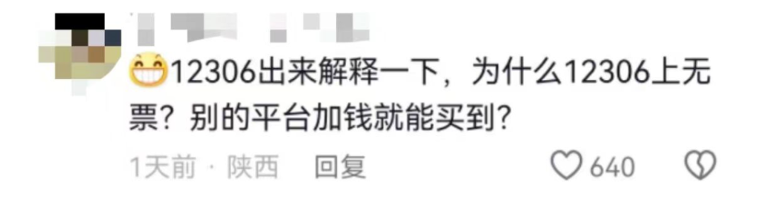 在社交平台上,有不少网友留言质疑铁路部门在12306平台上限制票数,将大量票分给第三方平台加价销售。还有网友提出要12306给说法。
