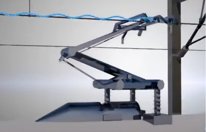 △高铁车厢上方的受电弓,图片截自纪录片《中国高铁》
