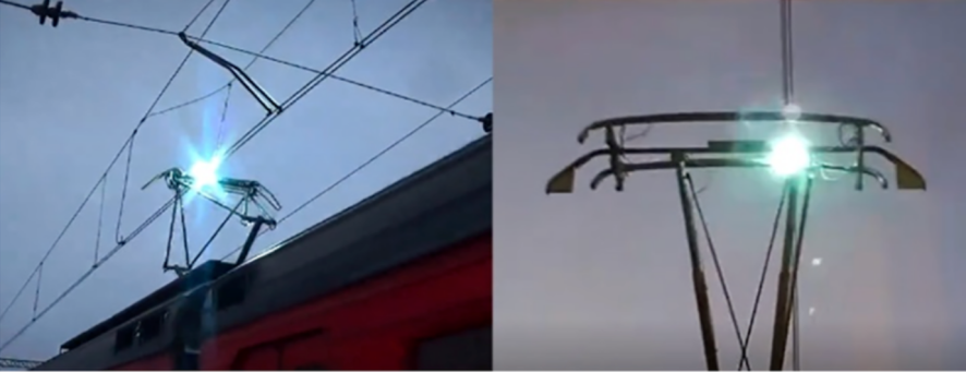 但如果电线上出现冰了,弓形头和电线之间的接触会受到影响。有些人看到的高铁一路开一路释放“闪电特效”,就是弓形头和电线之间的冰引起的。