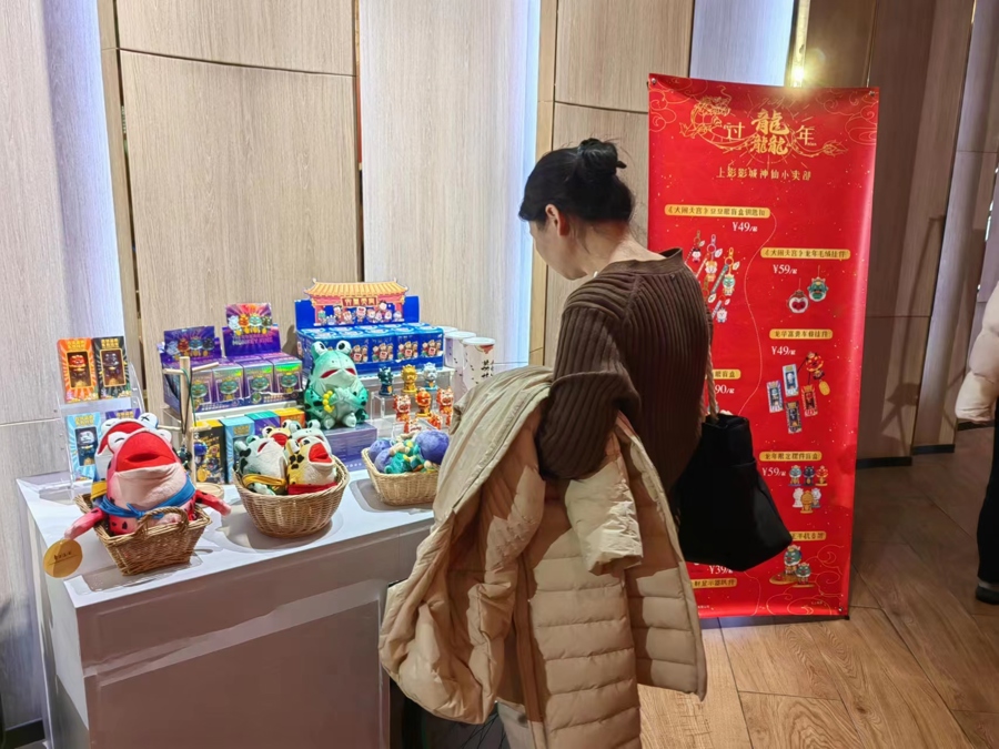 春节临近,不少影院氛围感已经“拉满”。记者2月6日在SFC上影影城(港汇永华IMAX店)发现,影院已变身“醇正中国年”主题场景,吸引不少观众打卡拍照。上美影大闹天宫、哪吒闹海、葫芦兄弟、黑猫警长组成“IP天团”亮相,与联名品牌携手展开一幅独具魅力的中国年味画卷。张淑娜介绍,上影影城在春节期间将为观众打造独特的“影院+IP”体验。利用上影的IP优势,精选上海的17家SFC上影影城,与知名酸奶品牌合作推出“星厨甜品套餐”,并在影院大堂打造“葫芦兄弟”打鼓贺岁打卡点,在春节假期向观众派送福利。目前,上影影城已进入“保票房”“保安全”“保祥和”的全员筹备状态,“春节期间,影院除安排充足人手进行服务工作,也对影院环境进行了全面打扫,并储备多样化的卖品库存,对影院的放映设备进行维护保养,保障提供良好的观影环境。”