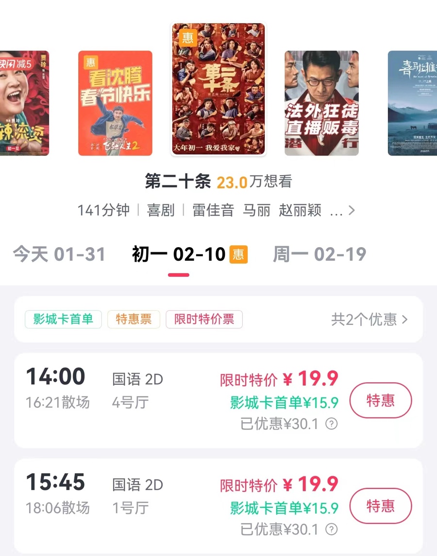 今年多种优惠补贴下,影院过年成为划算的文娱消费选择。
