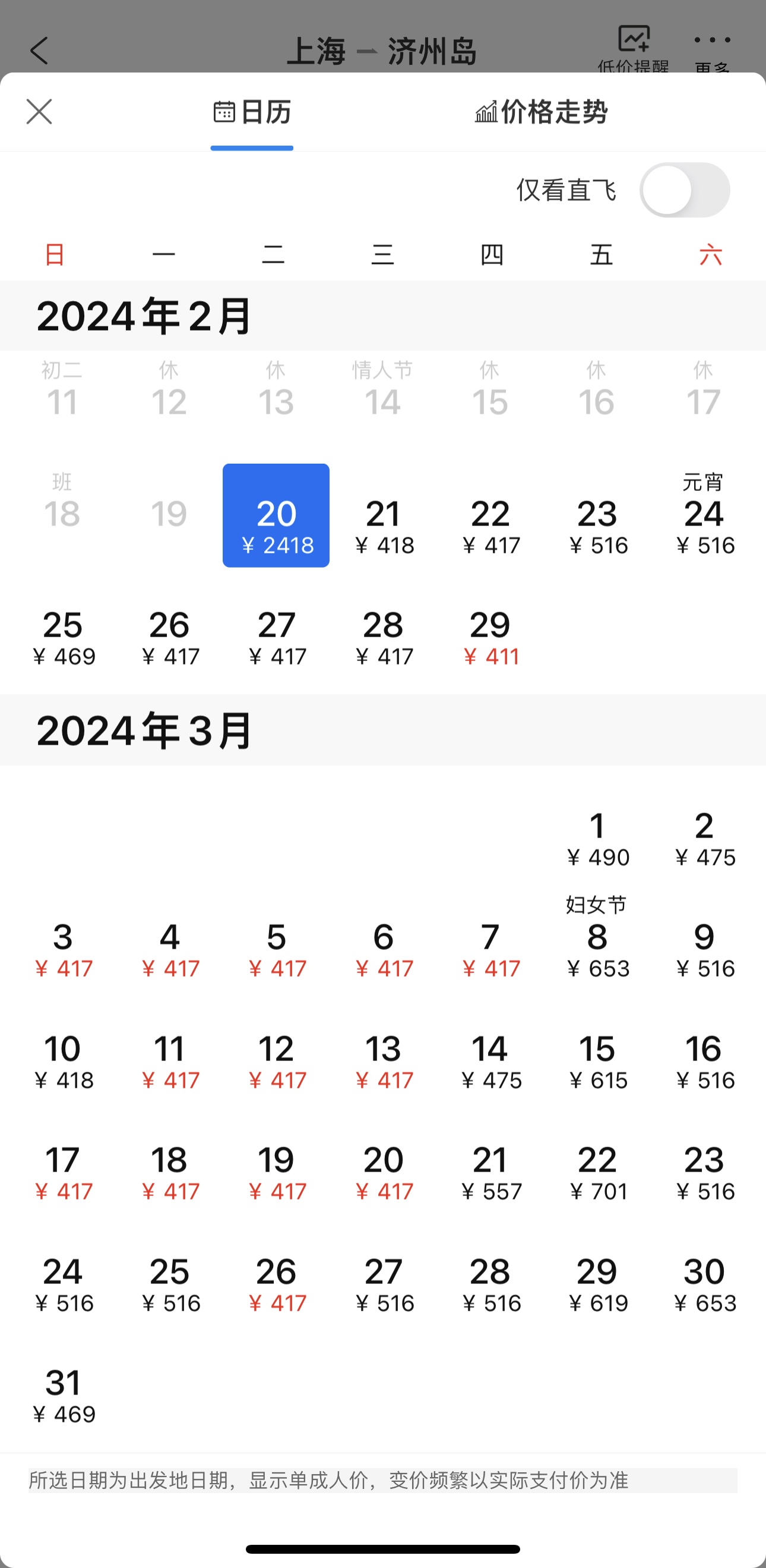 记者搜索在线旅游平台发现,以韩国济州岛为例,截至3月下旬,上海-济州岛的平日机票含税价格仅400元出头。