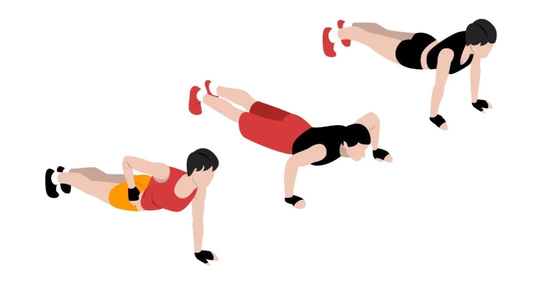 俯卧撑主要锻炼上肢、腰腹部肌肉,尤其是胸大肌,是一种简单易行却十分有效的力量训练手段。练习俯卧撑时,双手之间的距离以比肩略宽为宜,这样做会相对简单和安全,能避免驼背、塌腰。