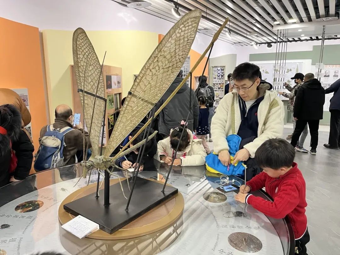 3日10时许,首场志愿讲解开讲,观众围在昆虫模型周围,听得津津有味。该馆志愿服务团团长杨皓然俯身,向小观众提问:“这个足有一米高的模型是三维打印技术生成的,你们猜它的昆虫原型有多大?”问题抛出后,大家纷纷猜答案。杨皓然向其中一位观众的本上盖了一个昆虫章,笑着揭秘:“你猜对了,一只中华旌蛉长度只有3厘米左右,大约是成人大拇指的一半长。”