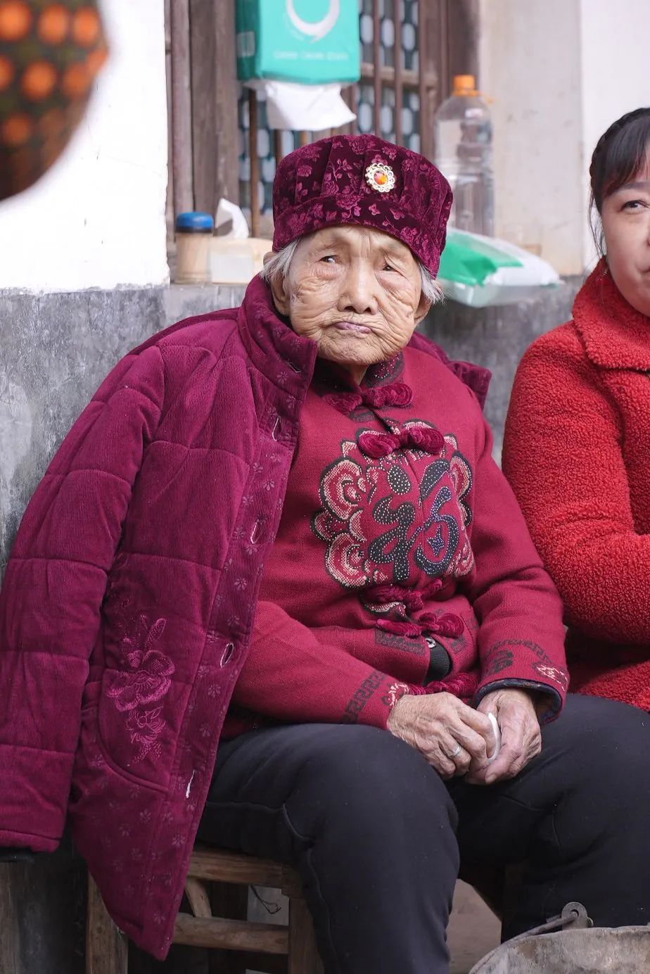 老人家被子孙后代簇拥在门口,头发已然花白,但穿戴整洁,正围着一座火炉烤火。她不说话,看到人会乐呵呵地笑,目光炯烁。院庭里正放着鞭炮,噼里啪啦的爆竹声,震耳欲聋。有时,她听不清来人说话,会微微侧身靠近,努力分辨,再回以微笑。