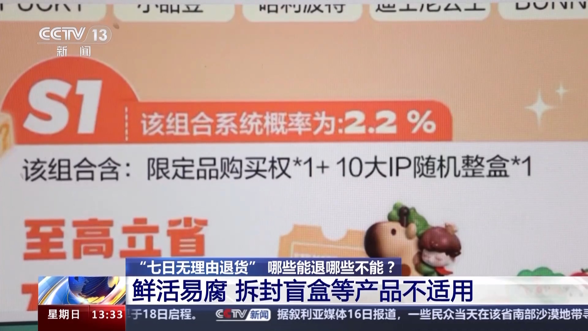 七日无理由退货规则是对消费者权益的一种保护,也是对商家诚信经营的一种规制。但并非所有商品都适用这一规则,比如“消费者定作的,鲜活易腐的,一经激活或者试用后价值贬损较大的商品”等就不适用“七日无理由退货”。其中也包括之前在网上引起关注的“盲盒”产品。