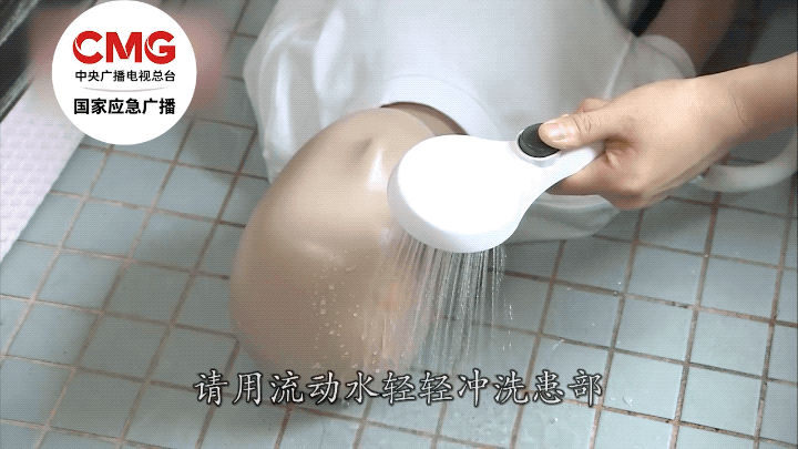 用流动水连续冲洗患部至少20分钟,直到皮肤不再发红。