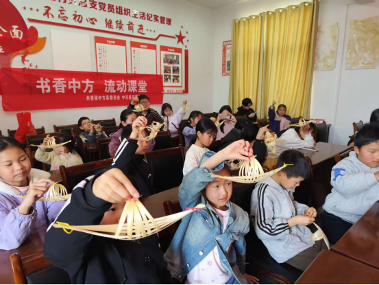活动现场,儿童文学、科普百科、红色经典、课外读物等各类图书分类摆放,搭建起可触可及的“移动书屋”,志愿者化身“阅读导师”,结合中方本土红色资源,开展红色故事分享会,带着大家分享读书感悟,全程陪伴孩子们挑选书籍、指导阅读方法,现场共借阅30本课外书籍。同时,志愿者手把手传授竹编手工传统技艺,孩子们在动手创作中感受传统文化魅力,现场氛围温馨热烈,一张张稚嫩的脸庞上满是对知识的渴望与成长的喜悦。