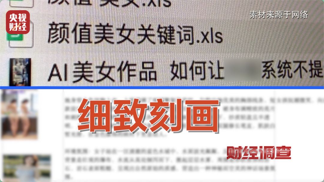 教程帖子标着“AI制作美女视频”“全网最强大尺度”“AI擦边赛道日入5位数”的标题,再配上色情露骨的画面,这些教程就在网络平台上堂而皇之地宣扬如何让用户“从无到有”“手搓”“色情擦边”视频。