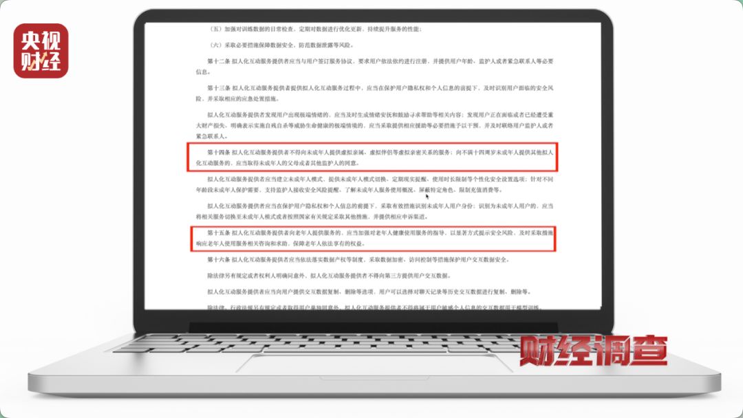 2026年4月10日,《人工智能拟人化互动服务管理暂行办法》正式公布,《办法》中进一步明确了安全评估和算法备案的相关要求,同时还对未成年人和老年人使用拟人化互动服务做出了相关规定。