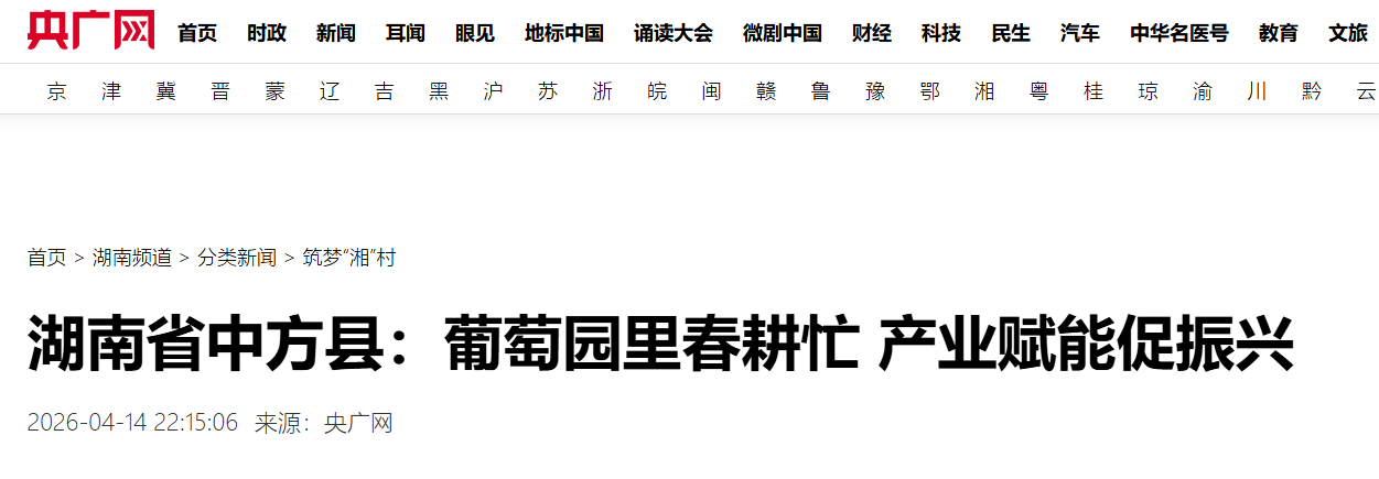 央广网|湖南省中方县:葡萄园里春耕忙 产业赋能促振兴